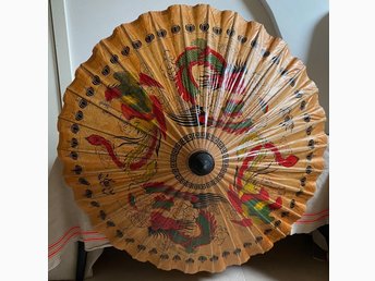 Antik vintage kinesisk parasoll papper handmålad art deco 1920-tal