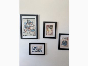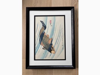Tavla med kinesiskt motiv på ris papper och snygg ram