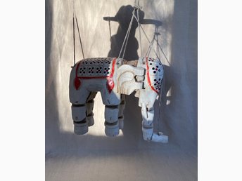 Vintage antik marionettdocka elefant figur trä Asien skulptur i trä dekoration