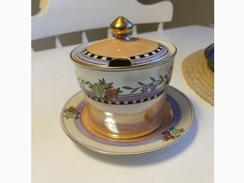 Noritake Handmålad Sockerskål med Lock och Fat japan