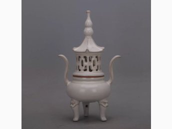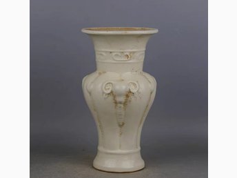 Song Dynasty Ding ugn vit glasyr öppen bit tre får flaska, 22,5 cm hög