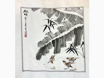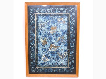 Sidenbroderi, Fjärils & blommotiv, Kina, 18/1900-tal
