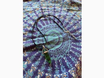 Halsband med svart rem och glaspendel - Jade - Naturstenshalsband