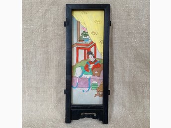 Vintage antik sidenmåleri sidenmålning kvinna panel asiatisk träram