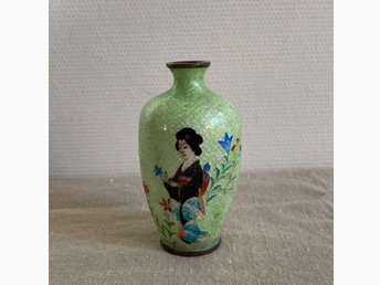 Vintage antik emalj cloisonne ginbari vas vase Japan Meiji 1800 1900 tal geisha