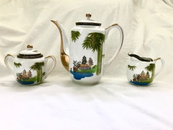 Tekanna/kaffekanna - Sockerskål - Gräddkanna - "Hayasi Fine China Kutani"