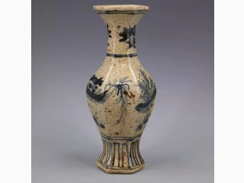 Ming blå och vit figur sexkantig vas, 20,5 cm hög