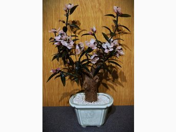 Stort Vintage Bonsaiträd 38 cm Glas Körsbärsblom 1900-tal Inredning Samlarobjekt