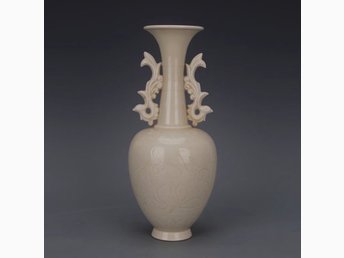 Imitation av Songdynastin Cizhou ugn vit glaserad snidad dubbel drakvas, 24,5 cm