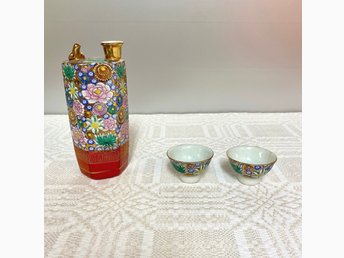 Japanskt sake-set / Kutani / Satsuma – karaff2 +2 koppar, handmålat guld