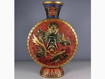 Qing Qianlong snidad månvas i lack, snidad drake, 25,5 cm hög