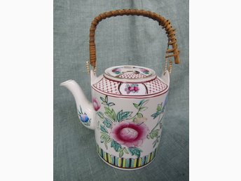 Äldre orientalisk porslin kaffekanna kanna bambu handtag H15cm Japan