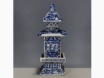 Imitation av Qianlong blå och vit sammanflätad lotusmönster pagod lock burk