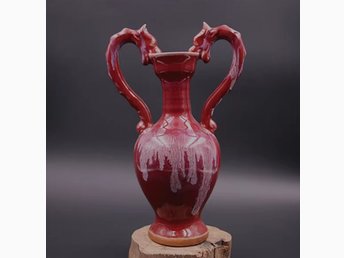 Imitation av Song Jun ugn dubbel drakhuvud ugn landskap vas, höjd 24 cm