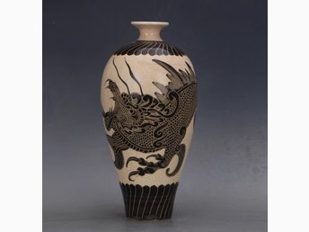 Song Cizhou ugn vit glasyr handmålad drake mönster plommonvas,Höjd 33 cm