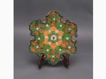Tang Sancai solrosblad multilateral uppskattningsplatta, diameter 17,5 cm