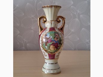 Victorian-Style Vas i Fransk Porslin med Gulddetaljer