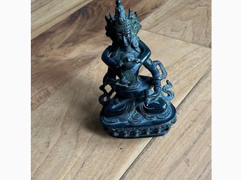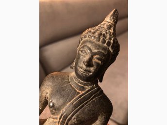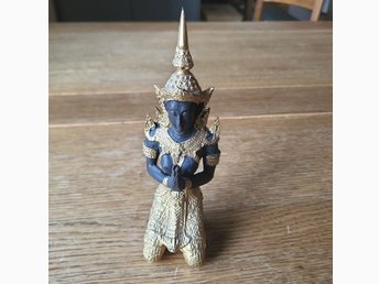 Statyett av Buddhistisk tempelväktare i Brons(?), förgylld.