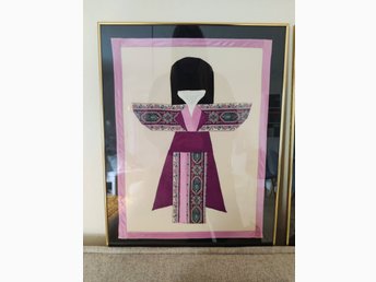 Vintage handgjorda Geisha-bilder. Tillverkade av tyg