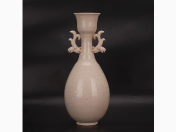 Song Ding ugn vit glasyr mörk graverad blomma fenix öronvas, 31 cm hög