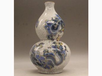 Qing Qianlong pastell drake mönster kalebass flaska (höjd 23CM)