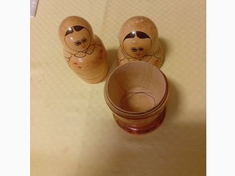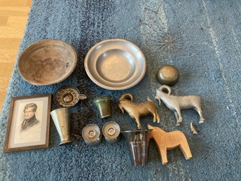 Parti diverse mestadels äldre kuriosa bl.a tennfat, träskål, bägare, figuriner