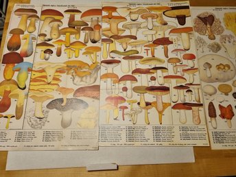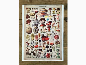 Fransk naturbild Svampar "Champignons" Inredning Skolplansch Tavla