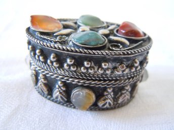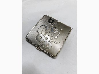 Puderdosa.Ns.Motiv i relief.Retro.-50tal.Oanvänt från äldre guldsmedsaffä
