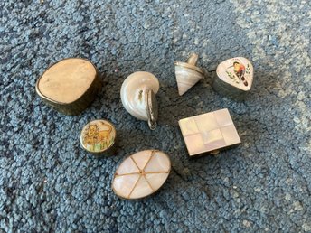 Sju vackra små lockaskar dosor pilleraskar bl.a av snäckor
