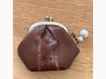 Äldre liten portmonnä myntväska i skinn Retro Vintage