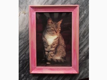 RETRO TAVLA - inramad äldre bild på KATT,JULKLAPP