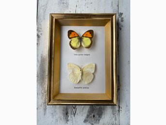 DEKORATIV TAVLA INRAMADE UPPSTOPPADE FJÄRILAR TAXIDERMI VINTAGE