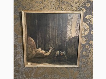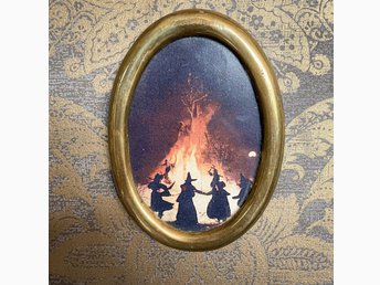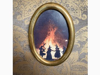 Tavla - Ockult motiv. Ram i äkta mässing. Häxa. Religon. Blackmetal.
