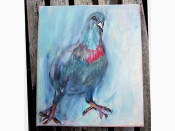 Konst-"DUVA/fågel" äkta TAVLA/målning/duk på träram/akryl JULKLAPP