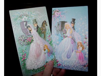 2 st BRÖLLOPSKORT,dubbla med 3-d effekt inuti ca 1960-1970 tal obrukade
