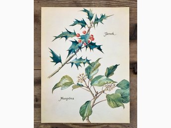 Äldre naturbild Järnek / Kristtorn och Murgröna Trädgård Inredning Skolplansch