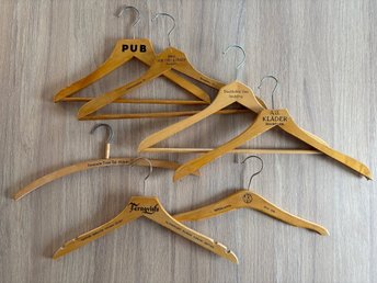 7 trägalgar - reklamgalgar – trä – galgar – hängare – vintage