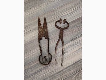 Antik fårklippningssaxar och sockertång