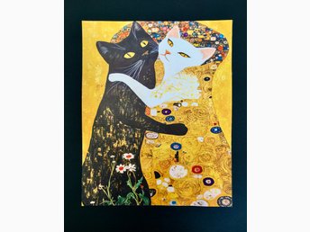 Poster plansch tavla Katter tolkning av Gustav Klimts Kyssen Inredning Art Deco