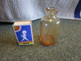 Trevlig miniatyrflaska med pip i brunfärgat glas