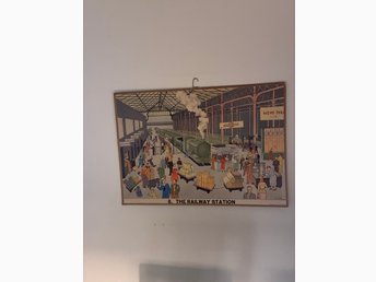 Skolplansch Vintage retro plansch railway station av Mary Epps?