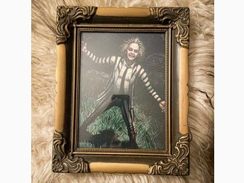 Tavla - Beetlejuice. Äldre ram. Kuriosa. Guldram. Antik