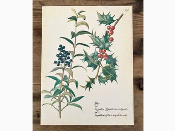 Äldre naturbild Bär av Liguster och Järnek / Kristtorn Trädgård Skolplansch