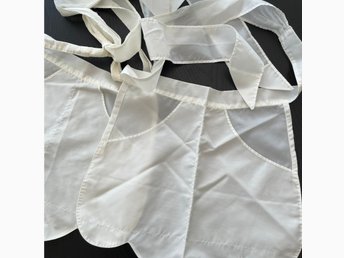 Två vita Vintage förkläden, servering i restaurang **Historiskt Plagg**