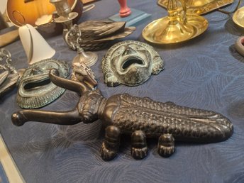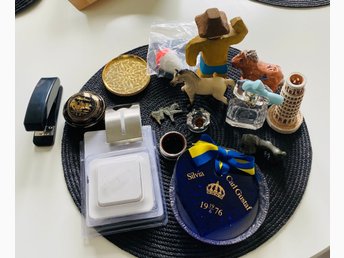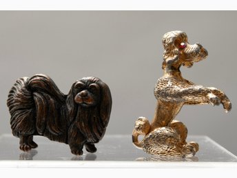 2st Vintage Hund Figurer, bl.a Pekingese Kinder Surprise, Pudel Förgylld Metall