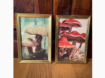 Tavlor - Svampar. Äldre metal ram. Guld. Kuriosa.
