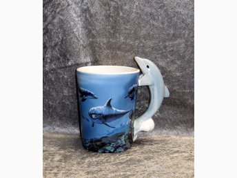 Delfin handtag temugg kaffemugg kermik mugg porslin present inredning rekvisita