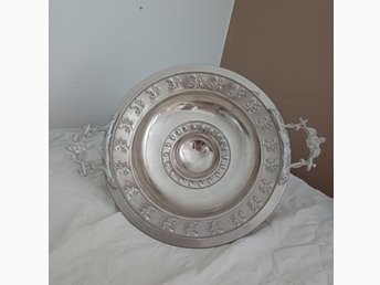 Fruktskål. Fruktfat. Kakfat. Metall. Fat. Silverfärgad. Metall