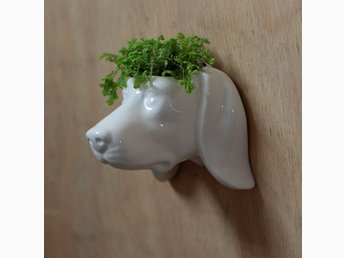 Hund huvud liten blomkruka keramik mini väggkruka present inredning EJ växt