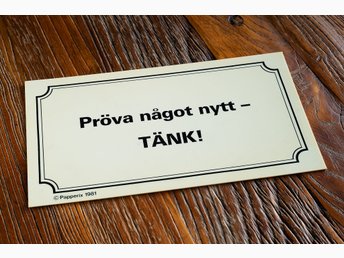 Skylt från 1981 – Pröva något nytt - TÄNK! – Papperix